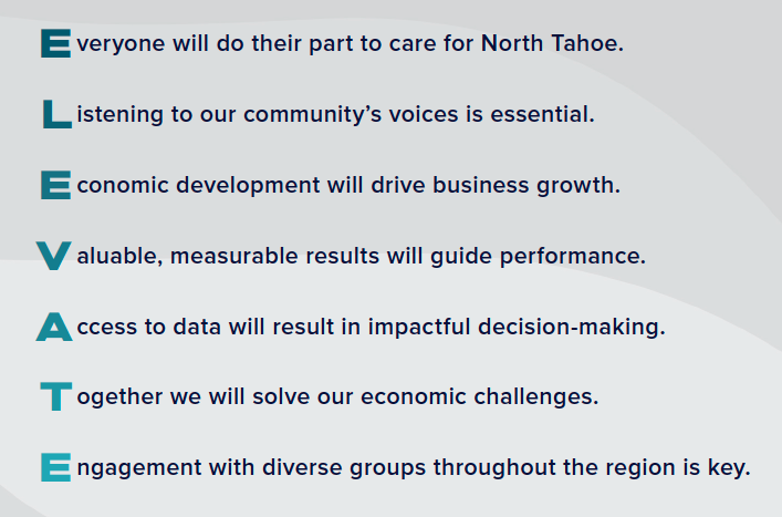 Serving as a strategic catalyst, the North Tahoe Chamber continually provides the tools, resources, and investments necessary to fuel a vibrant business ecosystem that attracts and retains businesses, supports redevelopment, and contributes to prosperity, growth, and sustainability of our local business community.